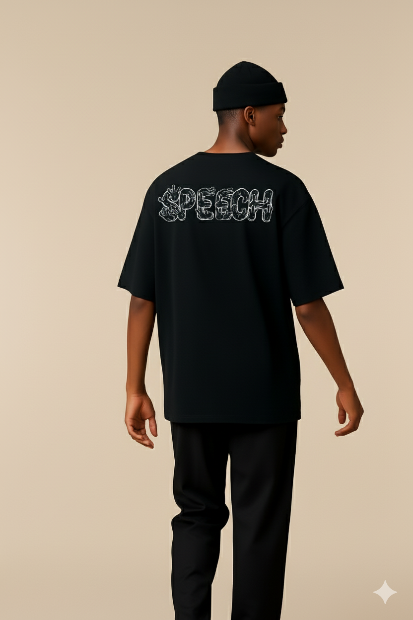 The oversized fit keeps it true to Speech Clothing’s DNA: bold simplicity, clean lines, and a presence that does the talking for you. Minimalist in form, maximal in meaning.